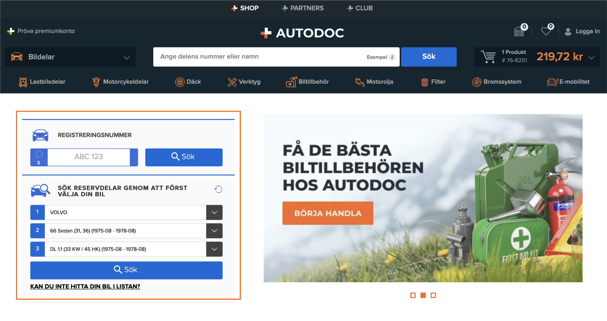 För att hitta rätt reservdel anger du uppgifter om fordonet (märke, modell och motorversion) eller registreringsnummer.