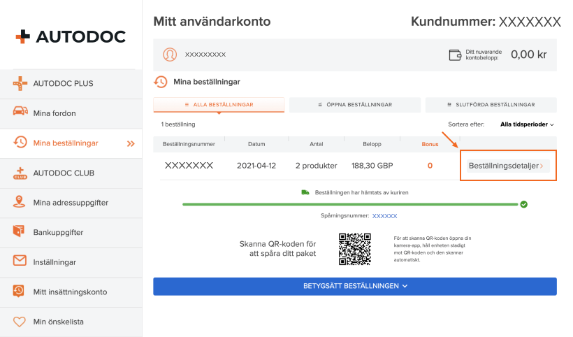 - Gå till fliken Mina beställningar på ditt användarkonto.