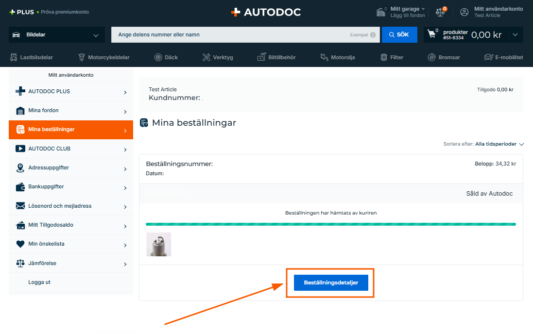 Du kan hitta mer information om en specifik beställning genom att klicka på ”Beställningsdetaljer".
