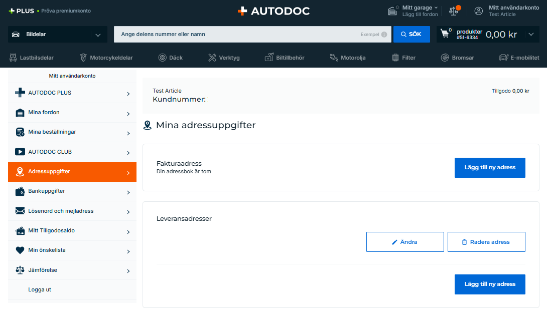 Observera att den adress som du lagt till senast automatiskt visas i din kundvagn när du betalar i kassan. Du behöver inte ange den manuellt.