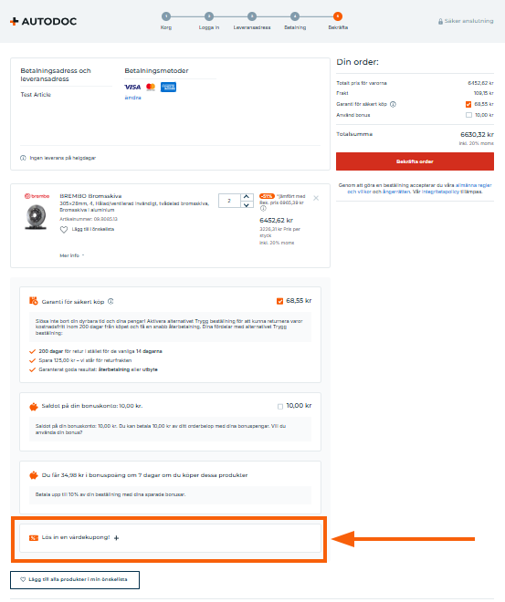 - Du kan ange rabattkoden i det sista steget i beställningsprocessen.