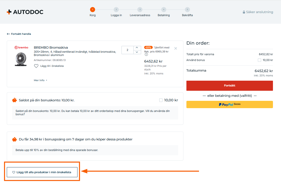 I det sista steget av beställningsprocessen, innan betalningssteget, kan du se den bonus som du får efter att köpet är genomfört.