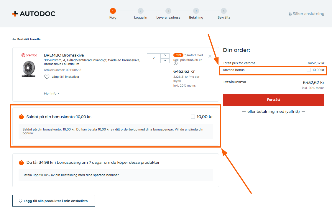 I kassan kan du se ditt bonussaldo och använda det genom att clicka i kryssrutan: